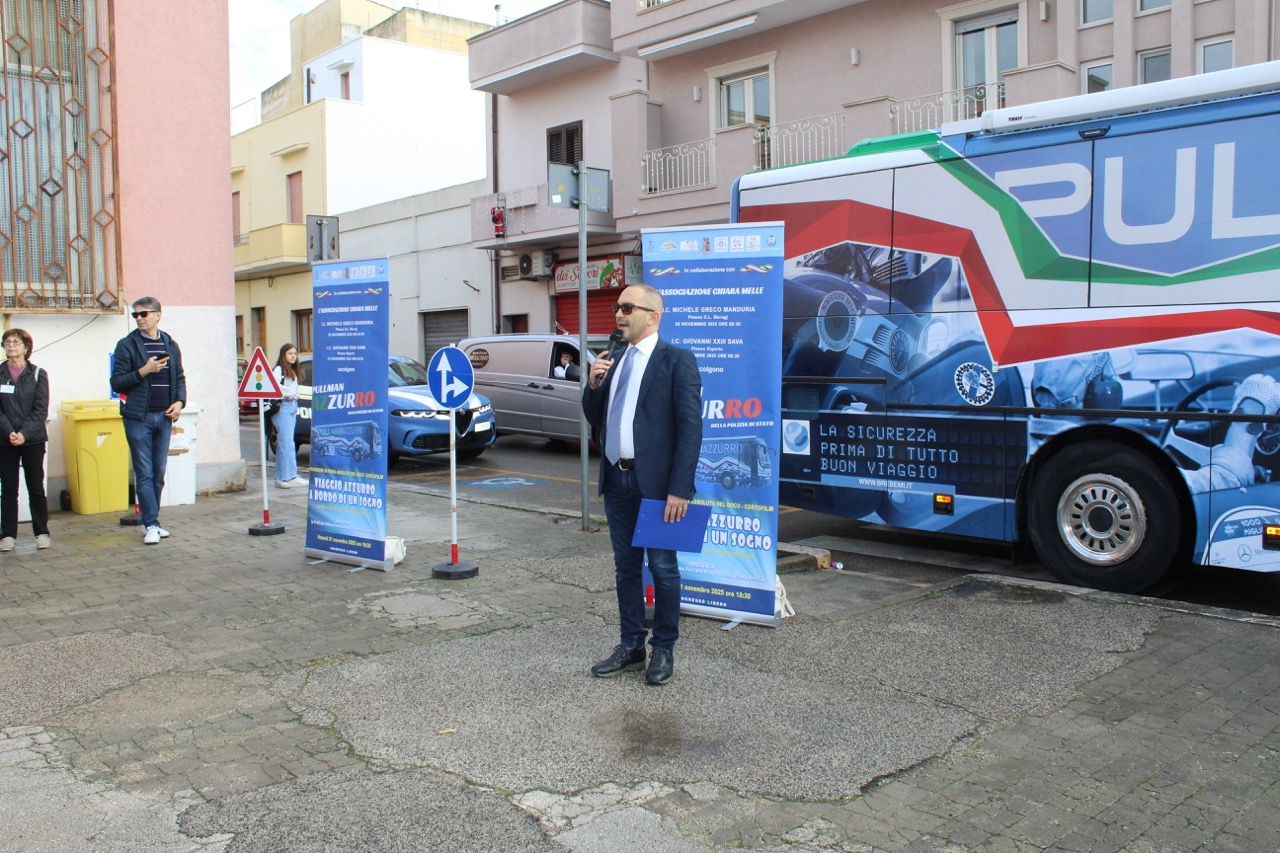 20 novembre 2025 - Il Pullman Azzurro arriva per la seconda volta a Manduria presso l’I.C. Michele Greco plesso Marugj